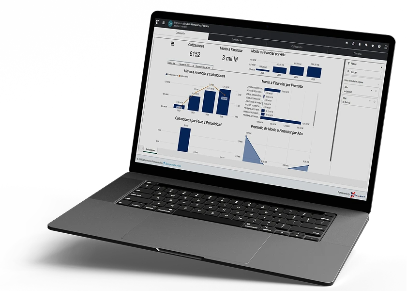 Crea propuestas de crédito y arrendamiento en línea a partir de parámetros definidos por la financiera, desde cualquier dispositivo.